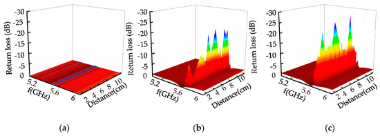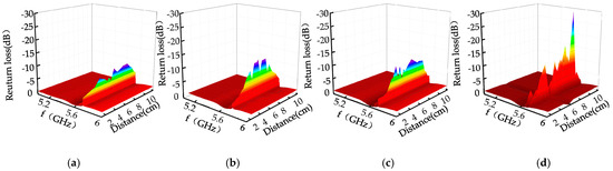 The vector network analyzer transmits and receives microwaves and analyzes the energy loss of microwave reflected waves at the defect. With an increase in defect depth, the return loss of microwave reflected waves under crack defects at different depths is shown in Figure 15.