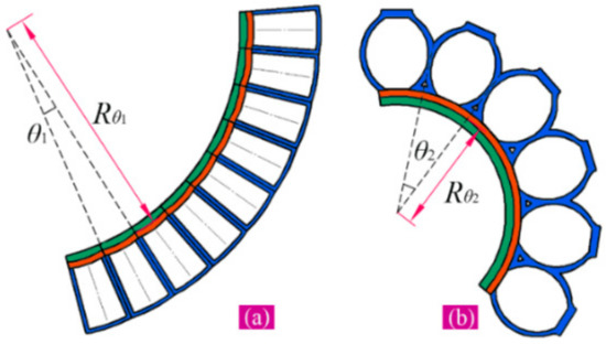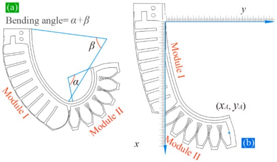 The bending angle model of the soft actuator is a basic model, and its performance determines the reliability of the kinematic model. As mentioned above, the conventional rigid-body-theory-based method is also widely used to model the bending angle, in which the soft actuator in action is viewed as a cantilevered beam. Based on the Euler–Bernoulli principle, the radius of curvature of the inflated actuator can be calculated, by which the bending angle can be obtained. A detailed introduction to this method can be found in [