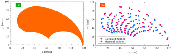 Figure 12b. It can be seen that the calculated and measured results present a nearly uniform distribution. To evaluate the position deviation, the distance between the predicted location and the corresponding measured location is calculated, and the results are shown in