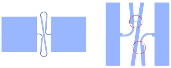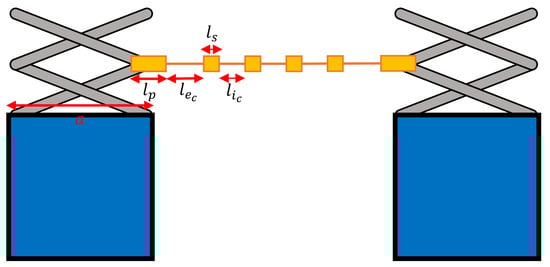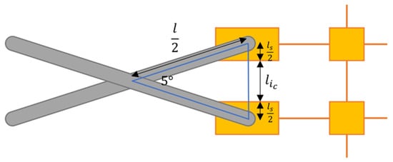 To select the appropriate link length, the geometry of the tool is considered in the closed configuration, as in Figure 11. Let the length of a scissor hinge link equal l, the length of a sensor pad on one side be , and the length of a closed interconnect be .