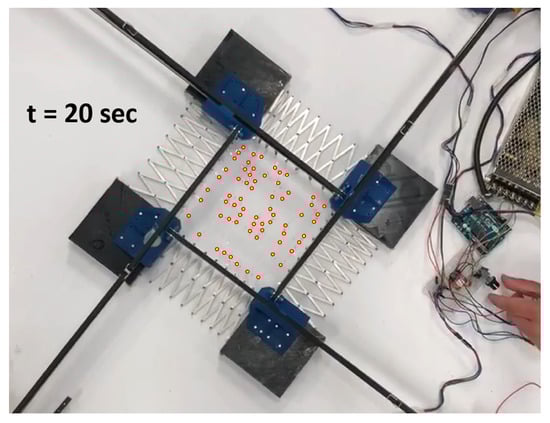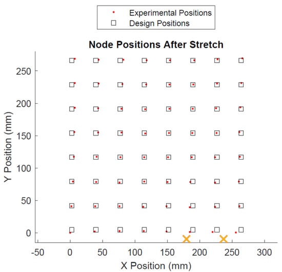 It must first be considered how the network should behave during its expansion, then a tool should be produced that replicates this behavior. Consider the desired behavior; unlike in previous methods, which comprise two separate expansions in two different directions [48], a controlled expansion in both directions at the same time is considered. In previous methods, when the network is expanded in one direction, the edge nodes are fixed to linear fixtures which are constrained to move along a certain path; the individual tensions applied to the network interconnects are not controlled, but rather the edge nodes are positionally controlled. This philosophy is partially effective for a 1D stretch; in the new method proposed here, this simple process is extended to achieve positional control of edge nodes in two dimensions simultaneously.