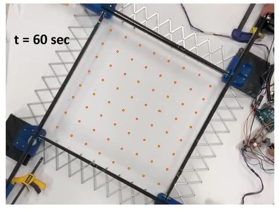 Given a micro-fabricated stretchable network of sensor nodes fabricated at a 100 mm wafer size, as shown in Figure 1, it is desired to develop a tool to open the network from its edges to stretch that network to its intended size and then deploy it onto the surface of a plate with a 1 m active area. Until this writing, such networks have been deployed manually by researchers and technicians [14,35,36,39,48], with the exception of one other deployment performed at SACL [16]. All network nodes are individually attached to the work surface for later integration with the target structure. A series of challenges are encountered during the network stretching process. The first class of challenge is the inherent inefficiency of the process; to proceed through the entire process, the technician must manually attach, detach, and reattach each perimeter sensor node to the fixtures and work surface, making the process laborious and time-consuming. A technician pursuing this method can expect to spend on the order of hours to complete the process for an eight-by-eight square network, even if performing the process perfectly.