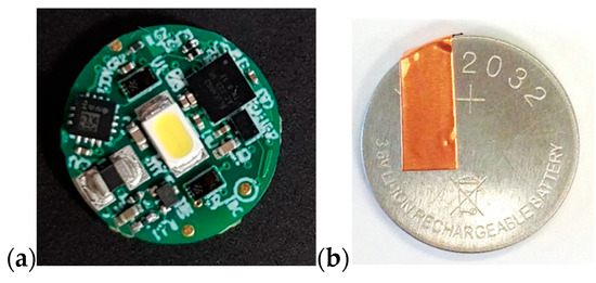 (a) Sensor board, (b) adapted LIR 2032 battery.
