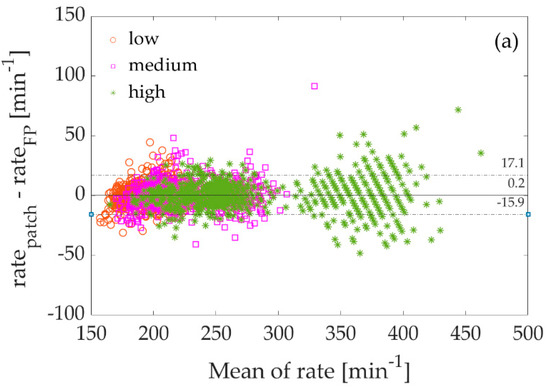 In conclusion, we demonstrated here that measurements of rates of running in place were similar to rates of running by all four of the devices examined and are valid, whereas at a fast step rate, the values provided by the Garmin Running Pod are no longer valid. The lowest mean bias and LoA in these measurements at all rates were associated consistently with the smart patch.