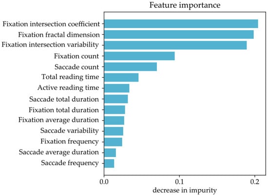 Feature importance of the eye-tracking features based on the decrease in the impurity of the random forest algorithm.
