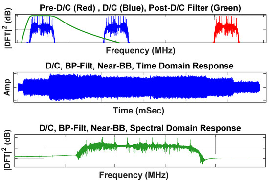 Given a goal of maximizing the SFM source-to-DUT electromagnetic interaction and increasing DUT discrimination, the SFM stimulus parameters were empirically determined based on discrete settings available on the N5222B analyzer. The resultant SFM parameters used for experimental collection included [19] (1) a total of NSFM = 9 frequency steps spanning a total frequency range of approximately 400 MHz < f < 450 MHz, with (2) the duration of each frequency step being TΔ = 0.125 ms for a total SFM pulse duration of TSFM = 1.125 ms. The DUT response was collected by the 825Zi-A oscilloscope, digitized, and stored for subsequent post-collection processing.