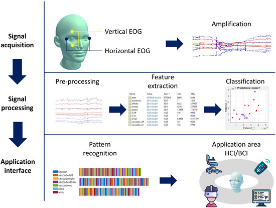 - D’Souza, S.; Natarajan, S. Recognition of EOG based reading task using AR features. In Proceedings of the International Conference on Circuits, Communication, Control and Computing, Bangalore, India, 21–22 November 2014; pp. 113–117. [Google Scholar]