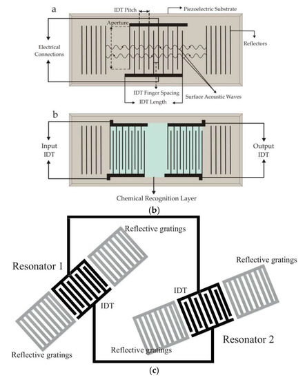 - Mujahid, A.; Dickert, F.L. Surface acoustic wave (SAW) for chemical sensing applications of recognition layers. Sensors 2017, 17, 2716. [Google Scholar] [CrossRef] [PubMed] [Green Version]
