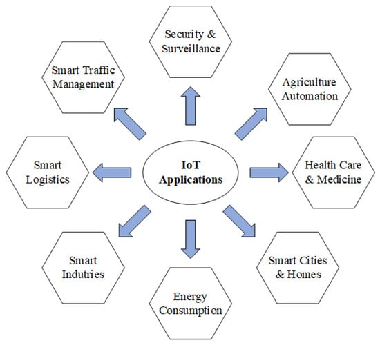 With the rise of the Internet, there has been an immense surge in Internet-based services [1]. As a result, many of the physical systems or devices that are connected to the Internet can easily be operated and managed remotely. Client behaviour can then be monitored and documented, future decisions can be predicted, and useful services provided [2]. The Internet of Things (IoT) is used in a variety of fields, including the smart home, smart city, smart healthcare, smart factories, smart supply chain, and smart retail. Figure 1 depicts a few of IoT applications that may be found in everyday life. The goal of such a smart environment is to make people’s lives more productive and add value by addressing issues related to living conditions [3]. However, because of increased interconnectedness, the network has become more complicated, making network security more difficult to sustain. Intruders consider security lapses to be an invitation to discover and exploit vulnerabilities in IoT networks. However, network security breaches can result in significant financial losses for businesses and consumers. Hence, it is essential to design a system that will ensure the security of the IoT network. Many tools and techniques are available to combat various cyber-attacks, such as spam filters, firewalls, anti-malware, intrusion detection systems (IDSs), intrusion prevention systems (IPSs), and so on [4].