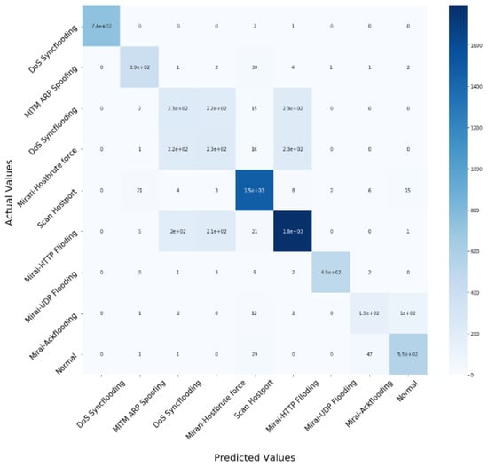 Figure 6. Confusion matrix for the multiclass classification of IoTID20.