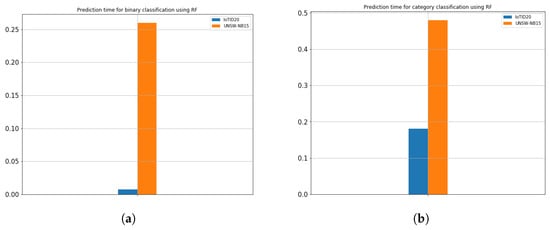 Figure 10. Prediction time (min) for IoTID20 and UNSW-NB15. (a) Binary classification; (b) Category classification. - (e)