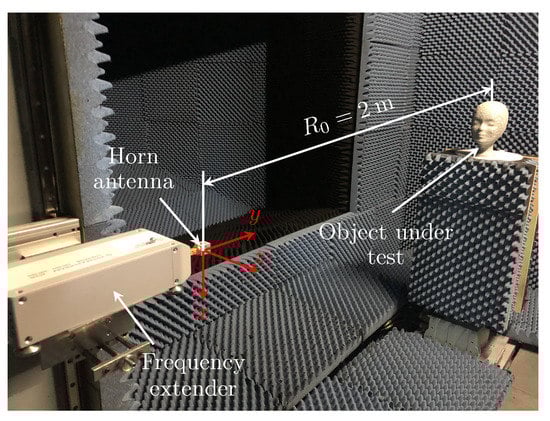 - Batra, A.; Vu, V.T.; Zantah, Y.; Wiemeler, M.; Pettersson, M.I.; Goehringer, D.; Kaiser, T. Sub-mm Resolution Indoor THz Range and SAR Imaging of Concealed Object. In Proceedings of the 2020 IEEE MTT-S International Conference on Microwaves for Intelligent Mobility (ICMIM), Linz, Austria, 23 November 2020; pp. 1–4. [Google Scholar]