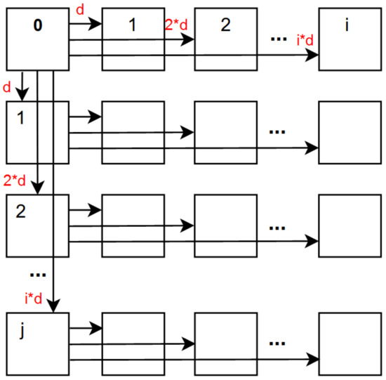 In order to verify this issue, a mathematical explanation is given. This scenario considers the projection scheme based on disparity shift, which was used by the authors in [8,9,10]. As illustrated in Figure 4, the disparity shift scheme increases disparity proportionally to the distance between the target and reference view. Our goal is to verify that the further the target view, the higher the median disparity error, leading to a worse projection of super-pixel labels. Let us consider an arbitrary super-pixel in the reference view (top-left), depicted in Figure 9.