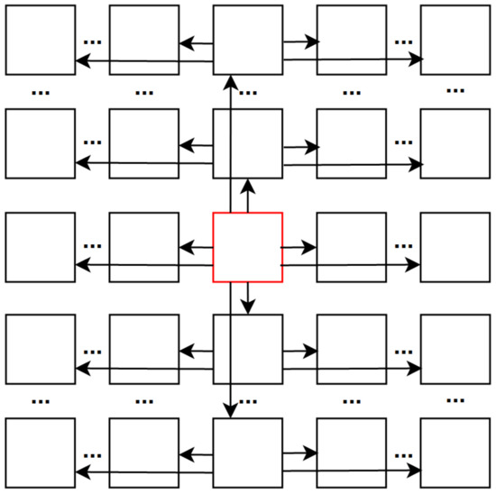 The proposed center-view projection scheme is illustrated in Figure 10. The purpose of this proposal is to improve rate distortion performance of [10] in real-world LF data with large parallax, which suffers from vignetting in peripheral views. From a center view, the projection spreads out to neighboring views, instead of proceeding row by row in one direction, as in [8,9,10]. Specifically, for a views real LF, this scheme performs a horizontal projection from the center view to remaining views symmetrically on the center row . Vertical projection is also performed in the center column symmetrically in both directions, with as reference. Then, for each remaining rows, its center view is now used as reference for the horizontal projection, covering all views of the remaining columns. This projection scheme not only avoids inaccurate disparity estimation in top-left view due to vignetting, but also allows projection to closer views (half the distance compared to top-left view projection), hence, the quality of more views can be improved.