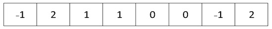 In this paper, each offloading strategy was regarded as a chromosome by integer coding, and each chromosome has N genes. The genes on the chromosome have three possible values −1, 0, 1, and 2, corresponding to local calculation, MEC server calculation, cloud server calculation, and roadside parking calculation, respectively. The encoding is shown in Figure 2.