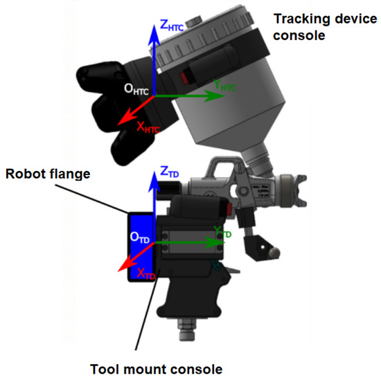 which is aligned to the robot flange and HTC Vive Tracker coordinate system (Figure 5)
