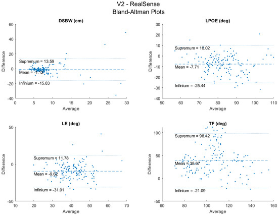 3.1. RealSense vs. V2 Reliability and Agreement