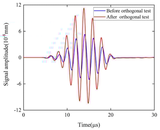 Comparison of the signal amplitude of the butterfly coil EMAT before and after the orthogonal test design.