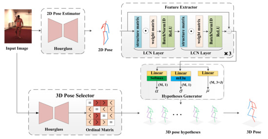 In this section, we first introduce the modeling of our proposed LCMDN. The architecture of LCMDN is shown in Figure 2. The LCMDN takes the 2D image as input and outputs a correct 3D human pose. The network consists of a 2D pose estimator, feature extractor, hypothesis generator, and 3D pose selector. Details of each module are introduced in the following subsections.