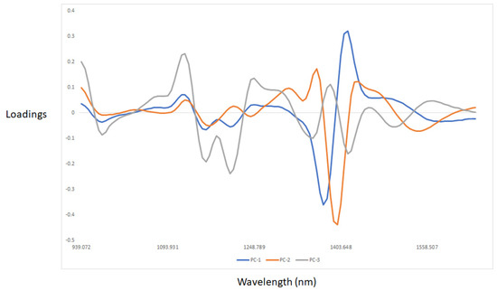 Loadings derived from the PCA analysis of the egg white and yolk samples analyzed using near-infrared reflectance spectroscopy.