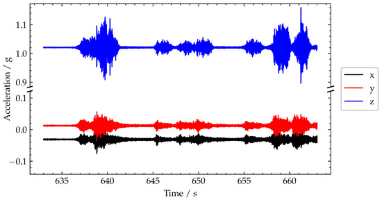 Plot of recorded acceleration signals.