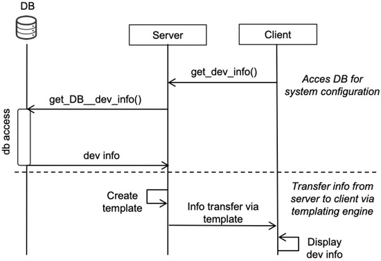 On the client side, the data are received and processed by using a combination of HTML and templating. Listing 2 shows how this compilation and display of the device information data are done at the client side. The text URLTEXT will be replaced by the particular domain of the server and port, e.g., 127.0.0.1:5001 if the server is running on the local machine.
