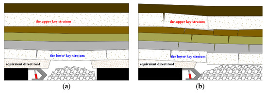 Schematic diagram of roof fracture of multi-key layer structure (a) initial weighting process (b) period weighting process.