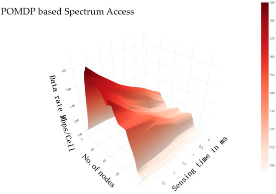It is pointed out that the overhead data rate is reduced by enhancing the sensing time. The reason for data rate limitation is due to the limited transmission time which is occupied by prolonged sensing duration. As a result, it demonstrates that the sensing time is described as 1 ms. In addition, it is observed, as, in Figure 12, that our projected PPBSA approach performs better than alternate models under sparse as well as dense scenarios.