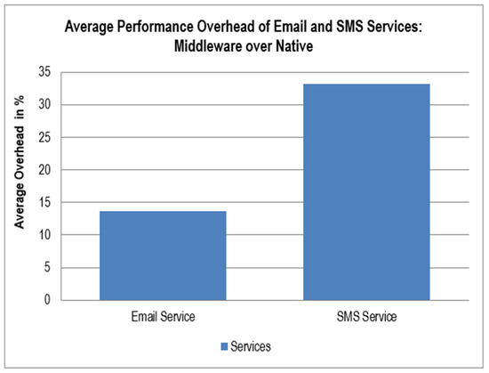 Performance overheads of email service and SMS service.