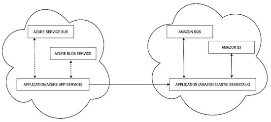 Scenario (i): The application is hosted on Azure App Service and uses Azure Service Bus (message queue) and Azure Blob Storage. Then it is migrated to Amazon Elastic Beanstalk, and the PaaS services are migrated to Amazon Simple Queue Service (SQS) and Amazon Simple Storage Service (S3), as shown in Figure 5.