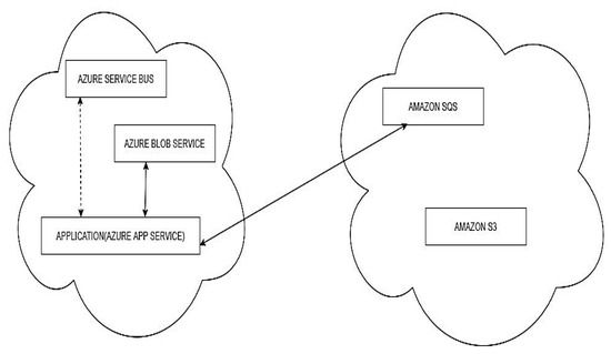 Scenario (ii): The application is hosted on Azure and remains there. The message queue service is migrated from Azure Service Bus to Amazon SQS. The BLOB storage service remains at Azure Blob Storage, as shown in Figure 6.