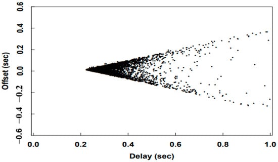 The relationship between clock offset and round-trip delay [7].