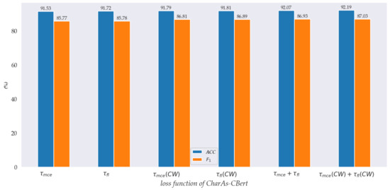 To verify whether the loss function we designed has a positive effect on the CharAs-CBert frameworks and the impact of the class weight () on the model performance. The experimental results are shown in Figure 3.