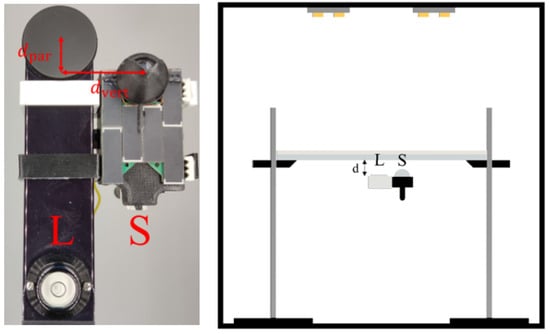 Setup to measure the radiation intensity under laboratory conditions using the LAI-2200C measurement instrument (L) and the sensor node (S).