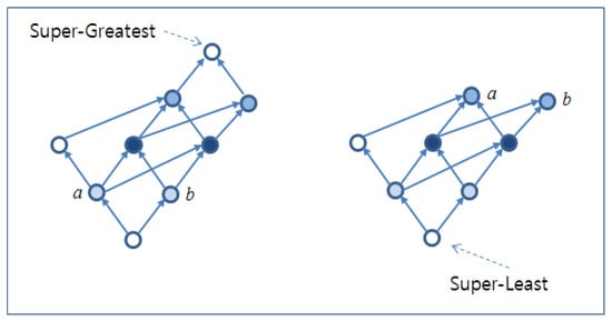 - Super-Least Element (SLE): Similarly, as shown in Figure 3, SLE implies the smallest element among all of the elements of the n-Lattice.