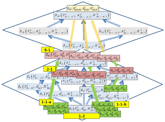 - Phase 1: Each behavior of the IoT Systems Domain was defined as a sequence of the interactions and/or movements of a group of the IoTs in the systems with respect to each type of IoT. Since interactions and movements among the behaviors were overlapped, the behaviors were organized in a lattice structure called n:2-Lattice, which has the special properties of multiple joins and meets. Further, the lattice could be interpreted with respect to the cardinalities of the types of IoTs, and it was possible to construct a type-oriented knowledge architecture for all the possible collective behavior of the IoT systems.