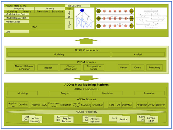 The dual approach in the paper is implemented as follows with PRISM and SAVE tools, developed on the ADOxx Meta-Modeling Platform [9]: