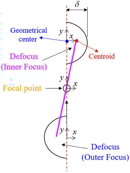Hereafter, some literature has been reviewed for diminishing the effects of laser fluctuations. In our published paper, a modified autofocusing algorithm was developed, and the distance L between the centroid and geometric center of laser spot image is used as the modified feedback signal [34], as shown in Figure 1, but this algorithm does not consider real geometric distortion of the laser beam. In our other previous studies [2,38,39], the autofocusing accuracy has further improved by using a motor and a rotating diffuser element, but this method increases the hardware cost. So, the accuracy of the focusing characteristic curve of the microscope is further enhanced by utilizing a proposed novel algorithm to effectively suppress the effects of geometric distortions in the current study. The feasibility of the proposed novel algorithm and prototype model have been demonstrated by using a series of experiments.