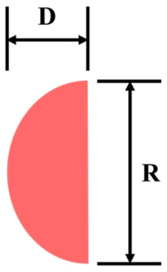 First, we define the width and the height of the laser spot image as D and R, respectively, as shown in Figure 9.