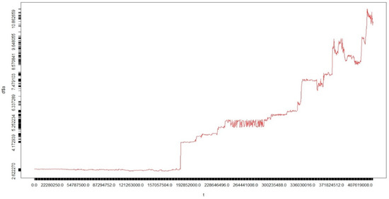 The data used in this study are the time series data of asteroid orbital element resonance. The data are on the evolution of the orbits of celestial bodies in the form of expected asteroids over the next several million years. An example of the time series dataset of the asteroid orbital element resonance can be seen in Figure 6. The data used were obtained from initial sources in the JPL NASA Small Body Database Search Engine (http://ssd.jpl.nasa.gov/sbdb_query.cgi; accessed on 3 March 2016) by filtering only for NEOs (near-Earth objects), which are asteroids of four classes (Amor, Apollo, Aten, and Atira), both numbered and unnumbered with very well-known orbits. As of 3 March 2016, 3372 NEAs (near-Earth asteroids) were obtained according to the epoch MJD57400. The data obtained comprised four asteroid orbital resonance data files, which can be seen in Table 1.
