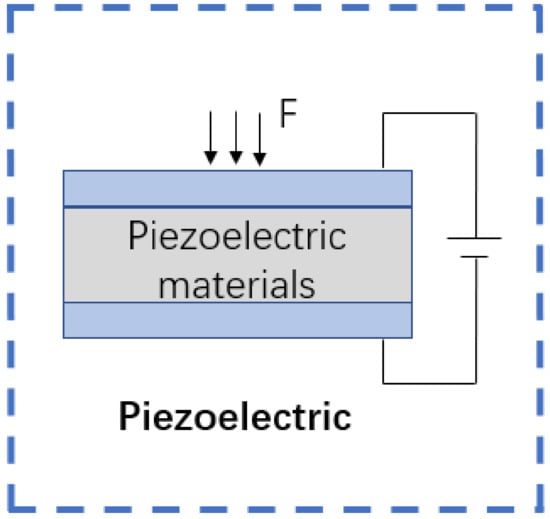 This type of sensor is designed based on the so-called piezoelectric effect principle of appropriate materials [47]. The piezoelectric effect refers to the deformation (including bending and expansion) of some dielectrics under the action of an external force in a particular direction. In this case, electrical polarization occurs internally, and charges of opposite signs are generated on the two surfaces at the same time. When the external force is removed, the dielectric returns to an uncharged state and when the force’s direction changes, the polarity of the charge also interacts with the changes. The amount of charge generated by the dielectric is proportional to the magnitude of the externally applied force. In this process, the magnitude of the external force can be calculated by the magnitude of the current (Figure 5).