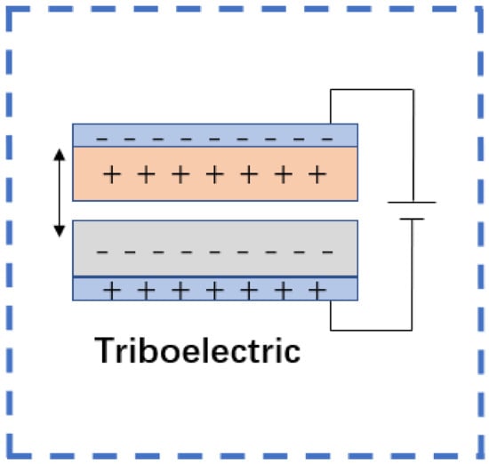 Flexible triboelectric sensors are typically composed of upper and lower electrodes, each lined with material on the inner face responsible for triboelectric generation, with a thin layer of air between the two. When pressure is applied, two materials with different charged sequences come into contact with each other, and a triboelectric phenomenon occurs, generating opposite charges on both sides of the interface. When the pressure is released, the two surfaces with equal and opposite charges are automatically separated. Due to the phenomenon of electrostatic induction, compensating charges are proportionately generated on the surface of the electrodes, but the air layer between the materials cannot completely neutralize the charges on the two surfaces, resulting in a potential difference [62]. This mechanism enables flexible triboelectric sensors to generate signals when pressure is applied and released (Figure 8).