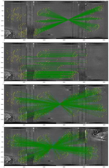 We, in this work, use downsampled SSS to reconstruct the bathymetry, which is conducted by averaging the SSS intensities within larger intervals. Such a procedure has weakened the effect of noise in the SSS images. However, if SSS data contain echoes from objects, fish or abnormal noise in the water column (see Figure 6c), the estimated bathymetry will still be affected. However, one of the disadvantages of downsampling is losing some useful information. The alternative of using downsampling to reduce the assumed white noise in the SSS waterfall images is to properly model the noise for underwater acoustic signals [27,28] and transform the noise distribution from acoustic signal processors to the SSS images.