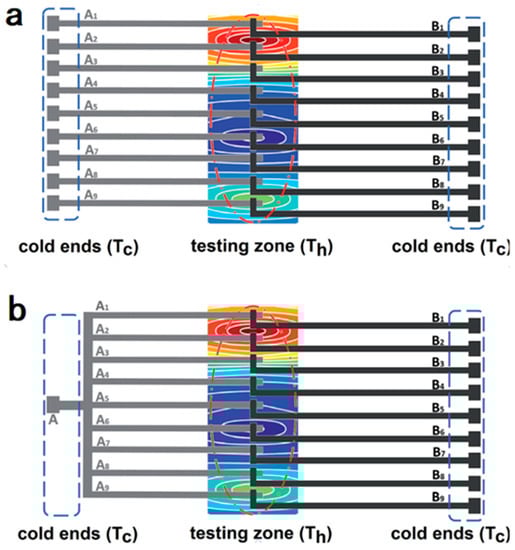 - Han, D.H.; Li, G.; Zhou, S.K.; Wang, Z.H.; Yang, F.; Xu, S.Y. To save half contact pads in 2D mapping of local temperatures with a thermocouple array. Rsc. Adv. 2017, 7, 9100–9105. [Google Scholar] [CrossRef]