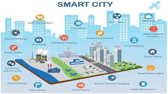 Many large cities around the world are adjusting to become smart cities, in order to enhance the quality of life for their citizens. With the use of digital, information, and communication technologies, traditional networks and services have become more effective. It means smarter transport networks and more efficient water supply, waste disposable facilities, and upgraded ways to heat and light buildings; as shown in Figure 1, it provides a city administration that is more interactive and responsive. It also enhances the use of city infrastructures and resources.
