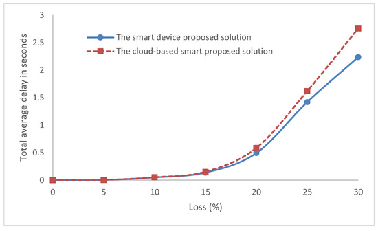 Moreover, as shown in Figure 11 and Table 3, when loss increases in networks, the proposed smart device has lower delays than the proposed solution of the cloud-based system. The delay difference was significant from 15% and above in the lossy network.