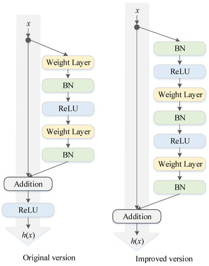- He, K.; Zhang, X.; Ren, S.; Jian, S. Identity mappings in deep residual networks. In Proceedings of the the 14th European Conference on Computer Vision (ECCV 2016), Amsterdam, The Netherlands, 8–16 October 2016; pp. 630–645. [Google Scholar] [CrossRef] [Green Version]