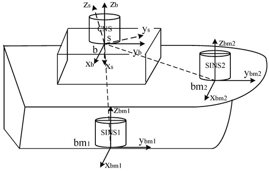 The composition of the initial alignment system is shown in Figure 1. The CNS is usually installed on the top of the carrier platform, which is not consistent with the body frame of the SINS installation position. The deviation angle between and or is composed of the static deformation angle and the dynamic deflection deformation angle [33]. The transformation from to should also consider the influence of the installation error angle of the CNS.