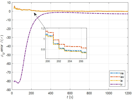 In the cases of the initial misalignment angles , the error curves of the dynamic deflection deformation angle are shown in Figure 16, Figure 17 and Figure 18.