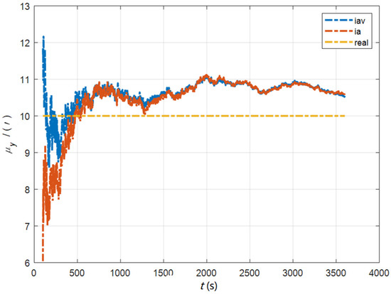 Based on the analysis of the above, since the velocity measurement information further improves the observability of the misalignment angle, and effectively inhibits the influence of the estimation error of the misalignment angle on the accuracy of the deformation measurement, algorithm iav has better deformation measurement performance; within one hour, the measurement accuracy of and can converge to less than 0.4′, and that of can converge to less than 0.8′. The measurement accuracy of and can converge to less than 0.5′, and the measurement accuracy of can converge to less than 0.9′.